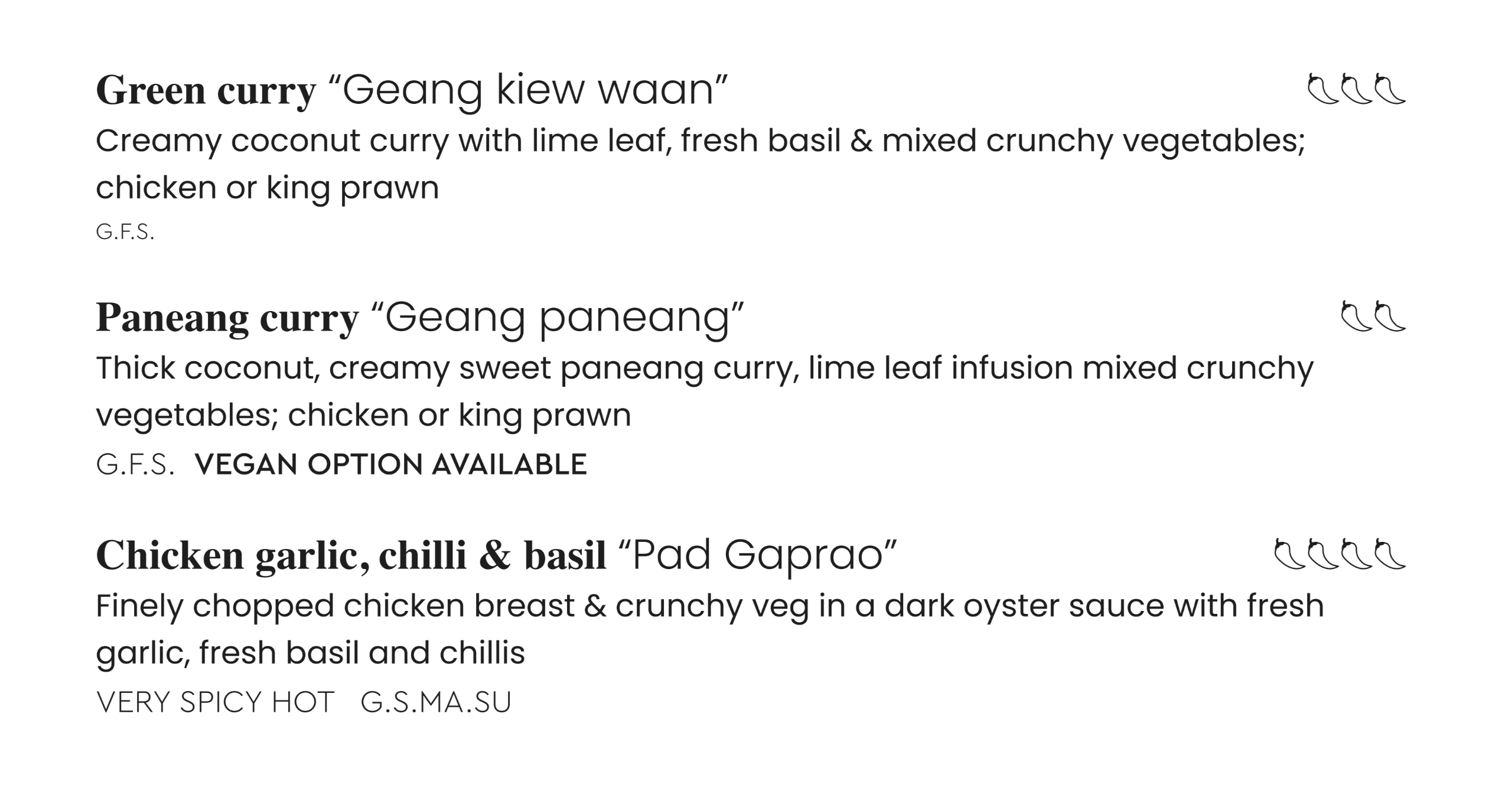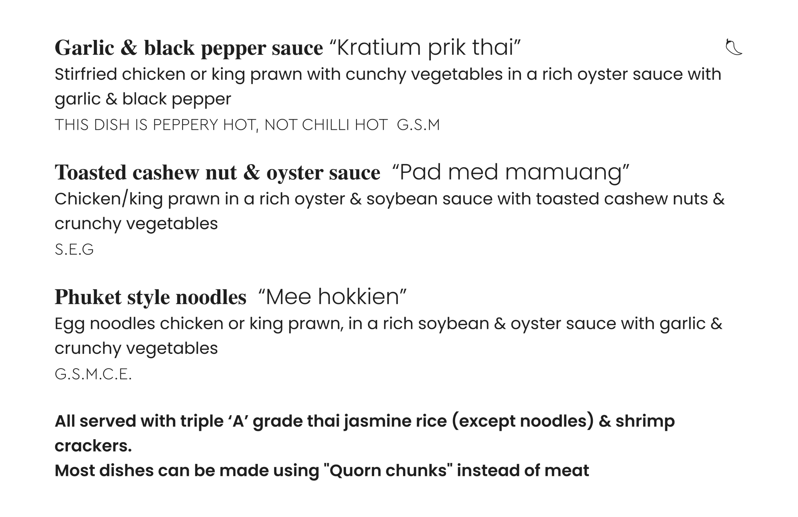 Thai menu