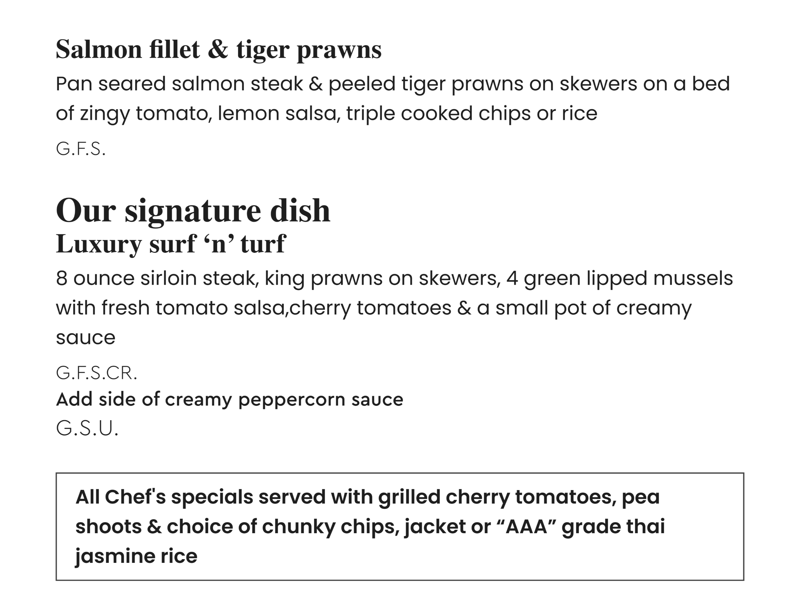 Chef specials & grills